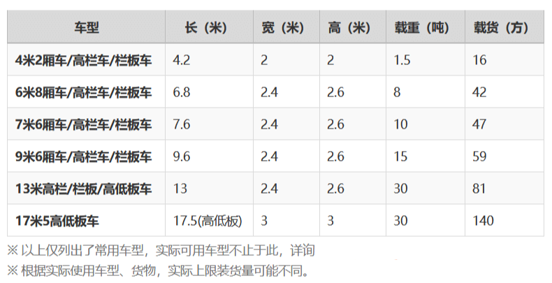 | 6.8米 | 5500元/车 | 回程车一年可直接降低40%运输成本,免费上门取件、送货上门。 | |